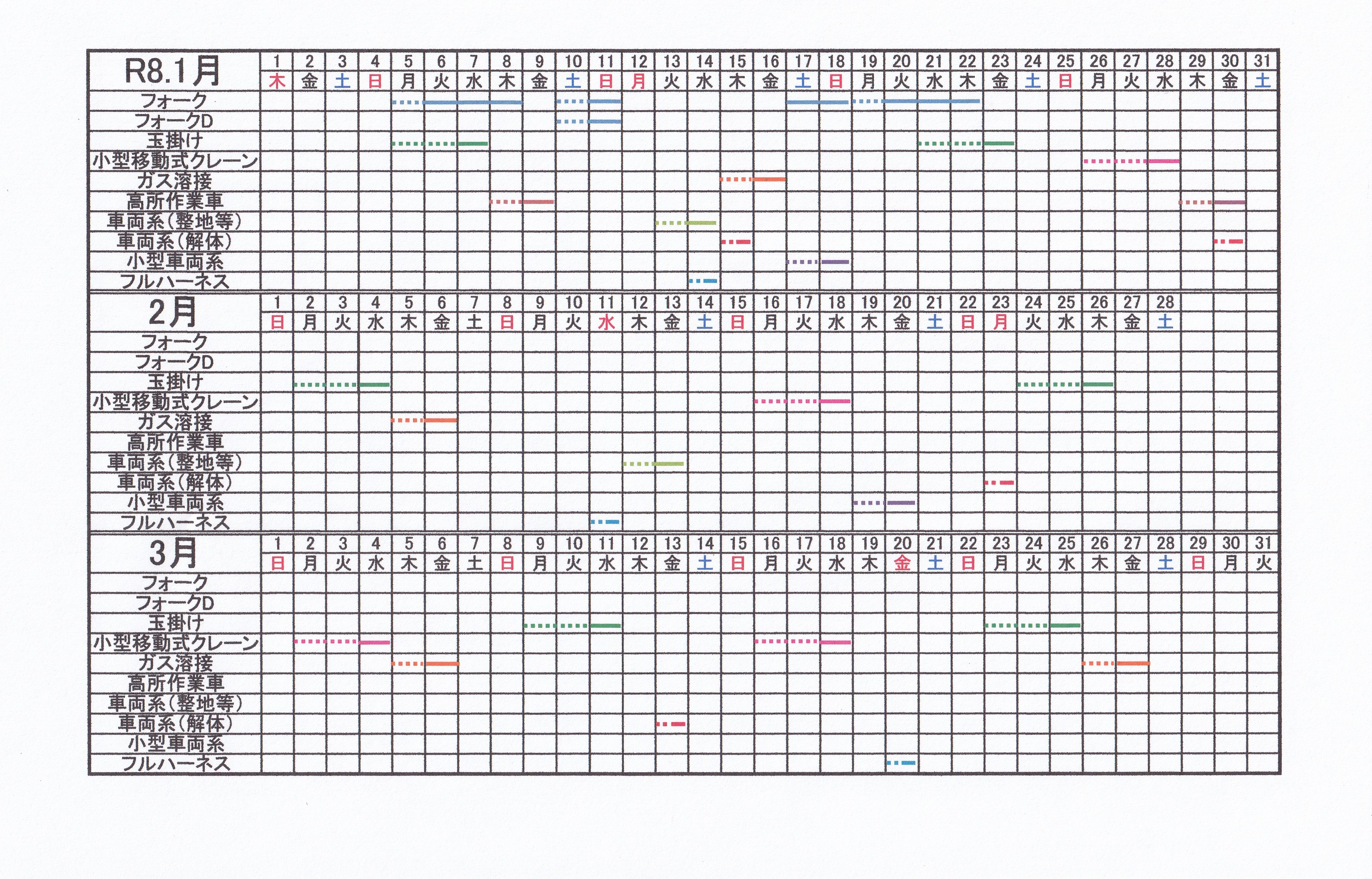 ※ 中央フォークリフト講習センター発行の修了証をお持ちの方は、統合の為持参下さい